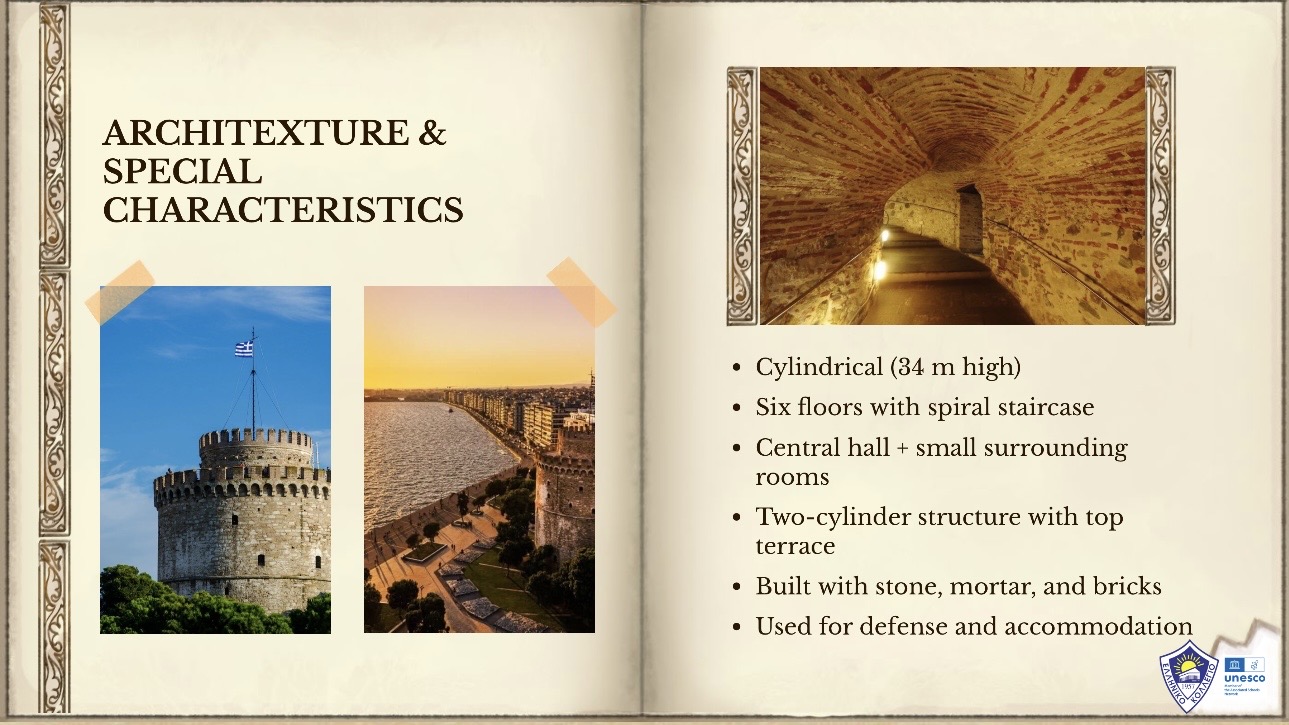 Students developed two digital presentations dedicated to the White Tower of Thessaloniki and the Arch of Galerius, using modern digital tools such as Genially and NotebookLM.