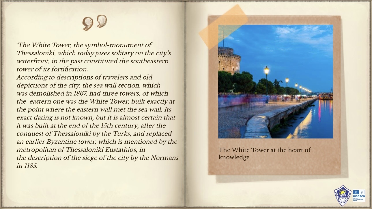 - Creation of two (2) Timelines in Canvas; “The Gateway to Tomorrow; History whispers the wisdom of Time” for the White Tower & “The Guardian of Memory” for the Arch of Galerius.