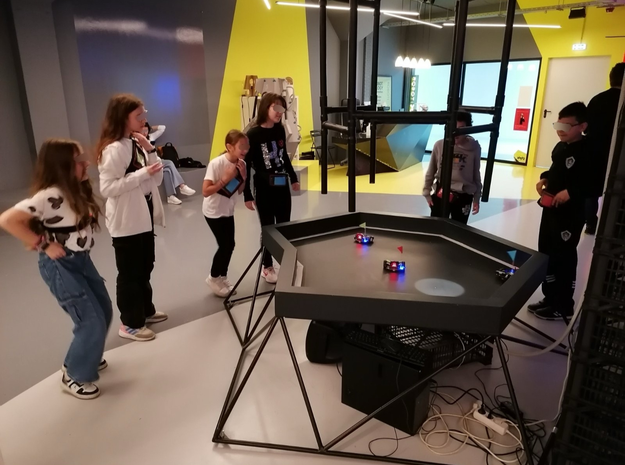 Παρατήρησαν και προγραμμάτισαν έξυπνα ρομπότ Α.Ι. και έπαιξαν με τα διαδραστικά εκθέματα. Τέλος, ήρθαν σε επαφή με τα “quadruped robots” (=τετράποδα ρομπότ 15 βαθμών ελευθερίας), ρομπότ εκμάθησης με νευρωνικά δίκτυα και ρομπότ με “machine vision” (=μηχανική όραση).