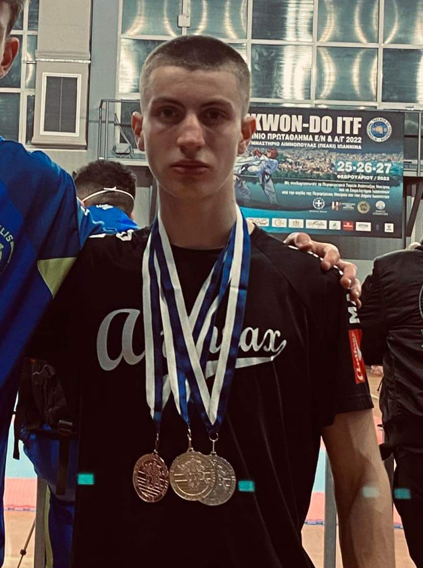 Ο μαθητής της Α’ Λυκείου Καραγκιόζης Ιωάννης διακρίθηκε με 3 Μετάλλια στο Πανελλήνιο Πρωτάθλημα Tae Kwon Do Εφήβων /Νεανίδων, Ανδρών/Γυναικών που πραγματοποιήθηκε στα Ιωάννινα στις 25-27/2/2022.