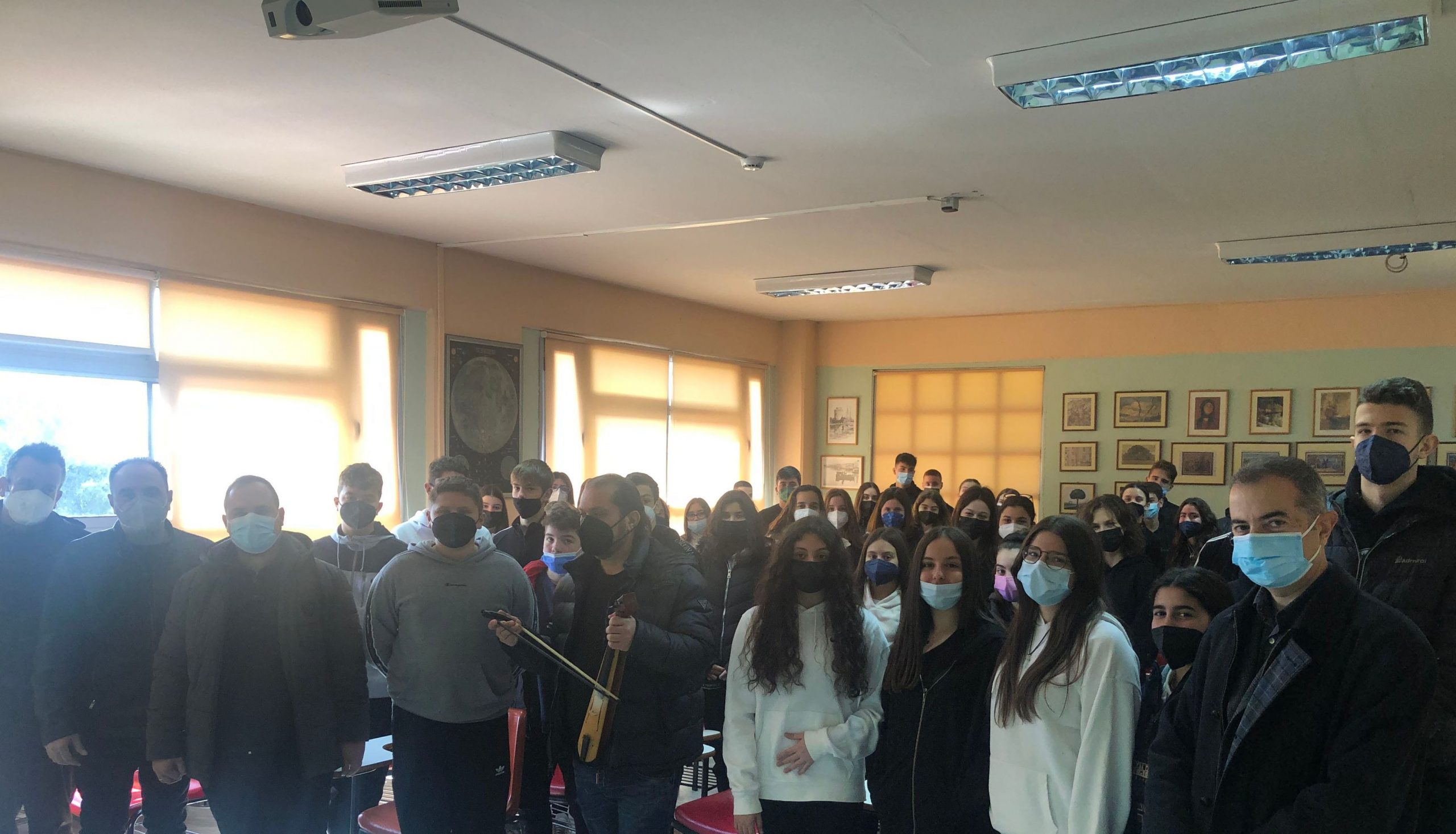 Οι δύο μουσικοί αναφέρθηκαν στη θεματολογία της ποντιακής μουσικής (δημοτικά  ακριτικά τραγούδια, άσματα με εθνικό και κοινωνικό περιεχόμενο, ερωτικά, γαμήλια, θρησκευτικά, πατριωτικά, μυθολογικά τραγούδια), ενώ περιέγραψαν και τους πιο γνωστούς χορούς των Ποντίων (σέρα, πιτσάκ, κότσαρι, αρχουλαμάς, μηλίτσα κλπ). Στη συνέχεια, αναφέρθηκαν στην ποντιακή λύρα ή κεμεντζέ, το κατεξοχήν λαϊκό μουσικό όργανο των Ελλήνων του Πόντου και των προσφύγων από την εν λόγω περιοχή. Περιέγραψαν τα μέρη της λύρας,  το τόξο (το δοξάρι που είναι απαραίτητο για τη χρήση του μουσικού οργάνου), τα υλικά κατασκευής, τον τρόπο παιξίματος, το ρεπερτόριο της παραδοσιακής λύρας. Μάλιστα, στο τελευταίο κομμάτι της εκδήλωσης, οι δύο μουσικοί τραγούδησαν με τη συνοδεία της ποντιακής λύρας, ώστε οι μαθητές να βιώσουν από πρώτο χέρι τους ιδιαίτερους ήχους και τα ακούσματα των Ποντίων και να πάρουν μία γεύση από την ποντιακή διάλεκτο.