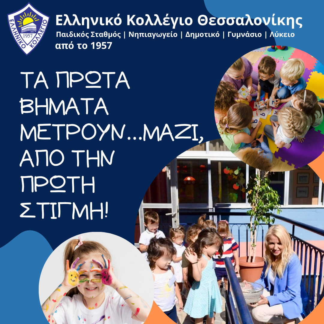 Σε ένα περιβάλλον πλούσιο σε ερεθίσματα, που διεγείρουν την παιδική φαντασία, το Νηπιαγωγείο του Ελληνικού Κολλεγίου Θεσσαλονίκης στοχεύει να βοηθήσει τα παιδιά ήδη από την νηπιακή τους (2 ετών) εκπαίδευση να αποκτήσουν κρίση, να ανακαλύψουν τις κλίσεις τους, να αναπτυχθούν σωστά σωματικά συναισθηματικά, νοητικά και κοινωνικά. Η ισότιμη ένταξη της προσχολικής αγωγής στον ενιαίο σχεδιασμό της εκπαίδευσης είναι για το Κολλέγιό μας ζήτημα ύψιστης σημασίας. Καθώς τότε μπαίνουν βάσεις για μια ομαλή εκπαιδευτική διαδικασία.