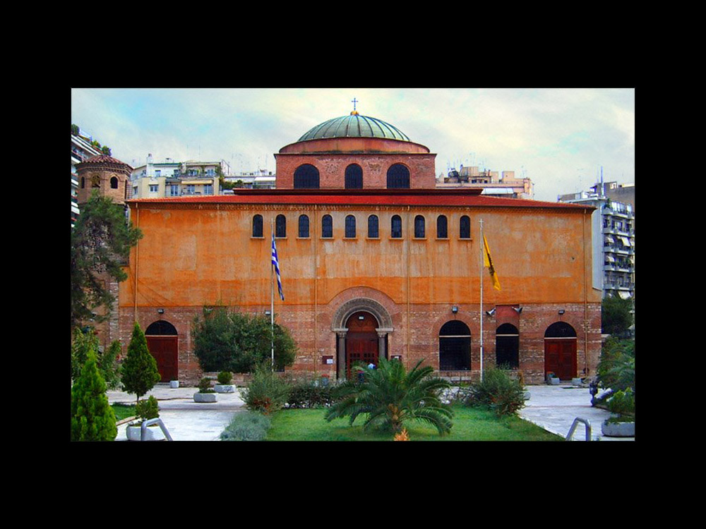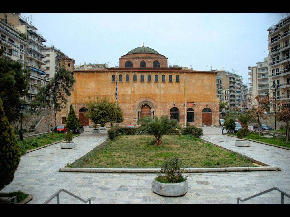 Πρόκειται για έναν παλαιοχριστιανικό ναό του 7ου αι. που ανήκει στον μεταβατικό σταυροειδή με τρούλο και περίστωο ναό, αποτελώντας μάλιστα το σπουδαιότερο μνημείο της ομάδας παρόμοιων ναών. Στη ναοδομία της Θεσσαλονίκης μέχρι τότε επικρατούσαν οι βασιλικές, αυτός ο ναός εισάγει μια νέα αντίληψη και είναι ο πρώτος μεγάλος θολωτός βυζαντινός ναός. Έχει δηλαδή τον κυρίως ναό τετράγωνο και με την προσθήκη του τρούλου παρουσιάζει το σύστημα της τρουλωτής εκκλησίας σε σχήμα σταυρού. Κατά τη διάρκεια της Τουρκοκρατίας μετατράπηκε σε τζαμί μέχρι και την απελευθέρωση της πόλης το 1912 με το όνομα "Αγιά Σοφιά Τζαμί". Στις 29 Ιουνίου 1913 ο ναός αποδόθηκε και πάλι στη χριστιανική λατρεία.