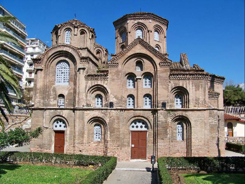 Σύμφωνα με επιγραφή που υπάρχει στο μαρμάρινο υπέρυθρο της δυτικής εισόδου ο ναός χτίστηκε το 1028 στο χώρο που πριν υπήρχε αρχαίος ελληνικός ναός, πιθανόν του Ηφαίστου ή των Καβείρων .Ιδρυτής του ναού είναι ο βασιλικός Χριστόφορος Πρωτοσπαθάριος και Κατεπάνω (διοικητής) Λαγουβαρδίας(βυζαντινή ονομασία τμήματος της Ν. Ιταλίας) μαζί με τη σύζυγό του Μαρία και τα παιδιά του Νικηφόρο, Άννα και Κατακαλή. Ο τάφος του κτήτορα βρίσκεται στο μέσο του βόρειου τοίχου. Σύμφωνα με την ίδια επιγραφή η αρχική ονομασία του ναού ήταν «ναός της Θεοτόκου». Το 1430 μετατράπηκε σε τζαμί με την επωνυμία "Καζαντζιλάρ τζαμί", τζαμί των χαλκωματάδων.